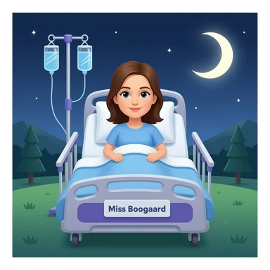 Blue and purple hospital bed with name Miss Boogaard emoji