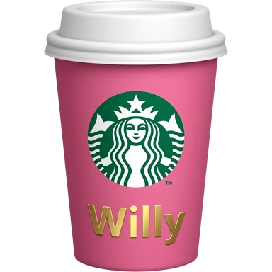 Starbucks pink cup with the logo and my name Willy in gold letters emoji