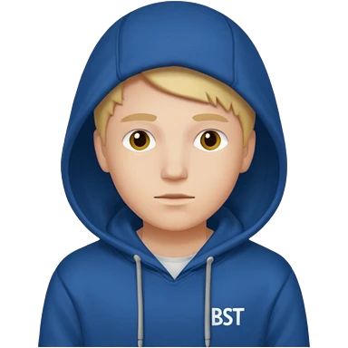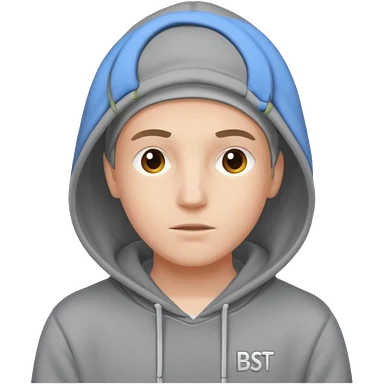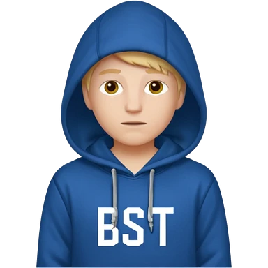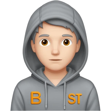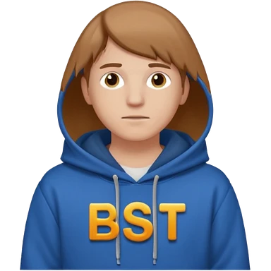 make an image of white person wearing hoodie with "BST" letters on it emoji