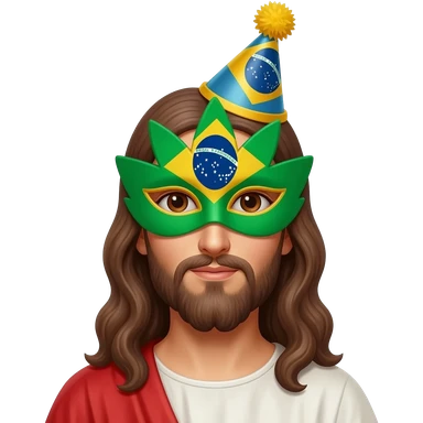 Jesus statue with brazil carnival mask and party hat emoji