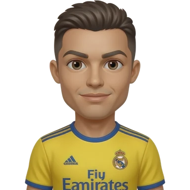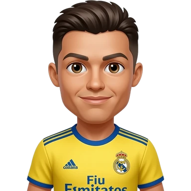 Coveka sa braon kosom sa dresom real madrida koji je zut i da pose ronaldo jr emoji