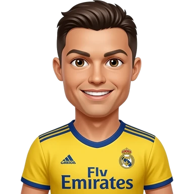 Coveka sa braon kosom sa dresom real madrida koji je zut i da pose ronaldo emoji