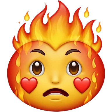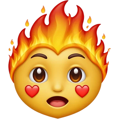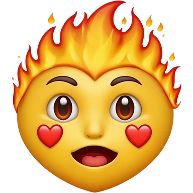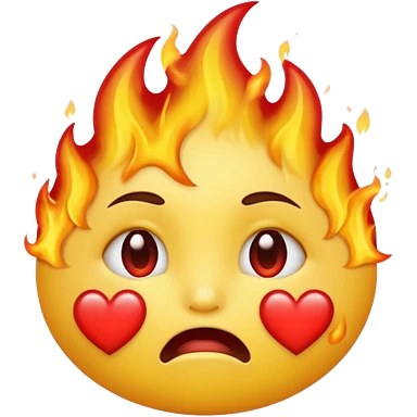 الايموجي الأصفر على شكلوش عيونه مدمعه و وراه نار و على فمه قلب احمر emoji