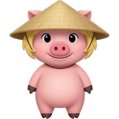 pig with blonde hair wearing vietnamese traditioanl hat emoji