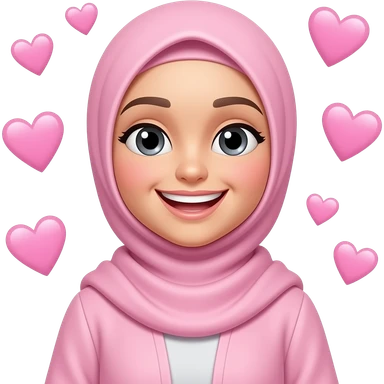 pale pink loving hijabi baddie, pretty, wide smile, don't change the outfit, with many heart emoji emoji