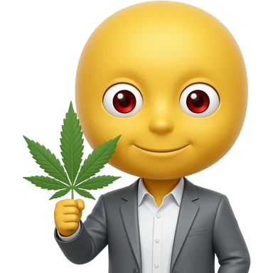 Default circle yellow head,bloodshot eyes, high, holding weed emoji