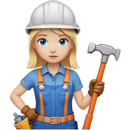A blond girl blue eyes, habdyman Outfit, wearing a Helmet and a Hammer, Whole body, from Head to toe emoji