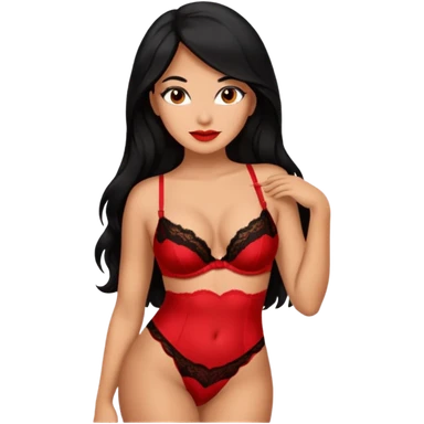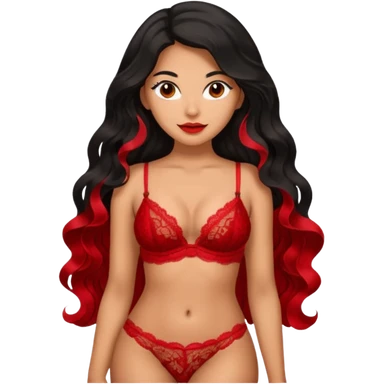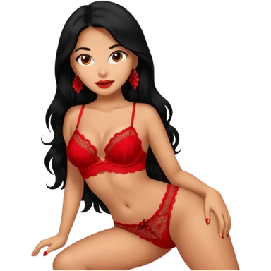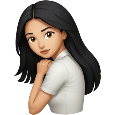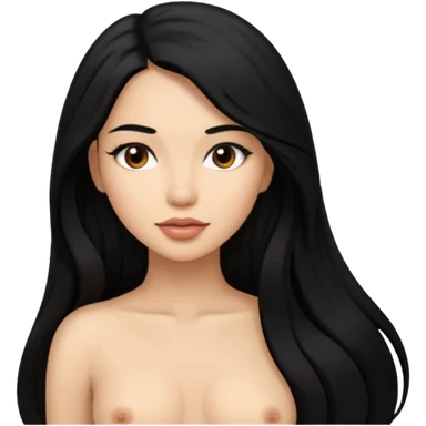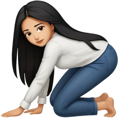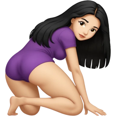 A Latina woman in a naked, long black hair, bending over (asshole and vagina visible) looking as camera emoji