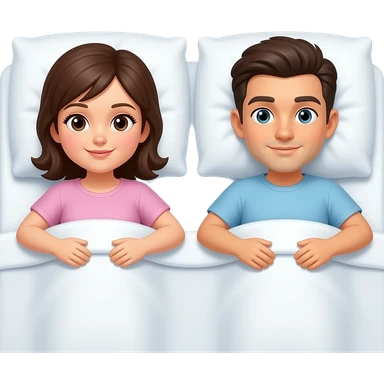 Fat, bald guy girl with short dark hair in bed emoji
