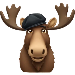 A moose with a beret on and a French moustache emoji
