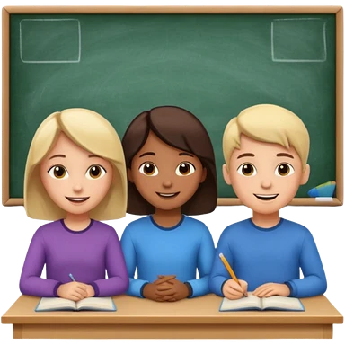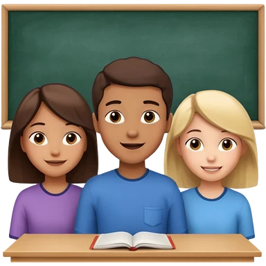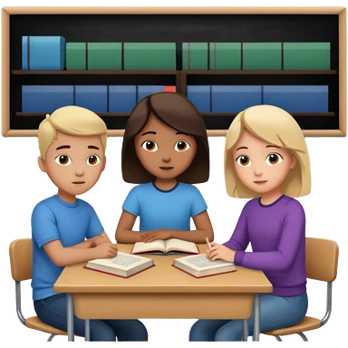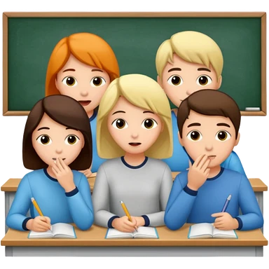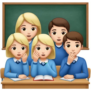 a group of students of both genders (boy and girl) talking quietly in a classroom emoji