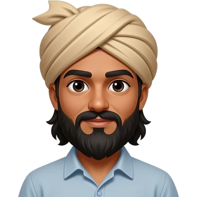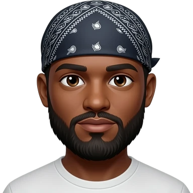 Make my skin darker and my beard longer and make me wear a bandana one that covers my whole head. Also make my beard slightly longer. Make my eyes black, also this person looks African make my look more indian emoji