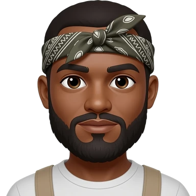 Make my skin darker and my beard longer and make me wear a bandana one that covers my whole head. Also make my beard slightly longer emoji