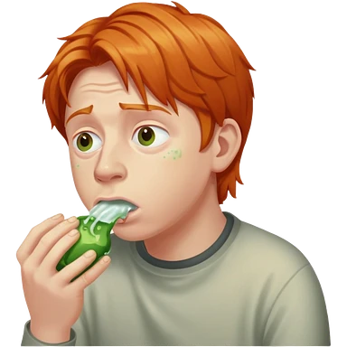 Ron Weasley with ginger hair vomiting green slugs emoji