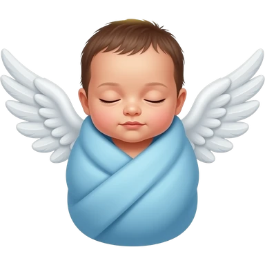 a little newborn baby wrapped in blue blanket with his eyes closed with angel wings and halo emoji