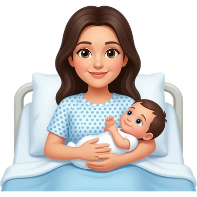 A mother on hospital bed with newborn baby boy emoji