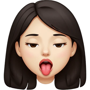 A girl with dark hair, closing her eyes and her mouth wide open while sticking her tongue out emoji