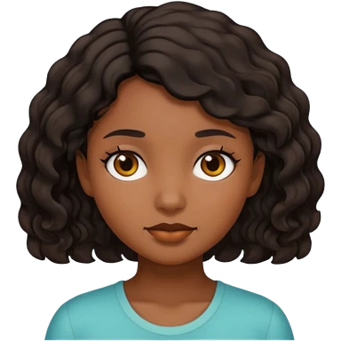 Girl with brown skin black short wavy hair emoji