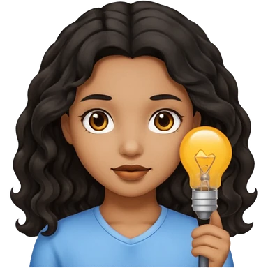 Girl with light brown skin black wavy hair emoji