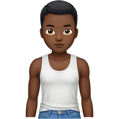 Un personnage noir avec un débardeur blanc et un jean 👖 avec des cheveux rasés noir emoji