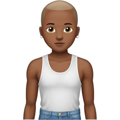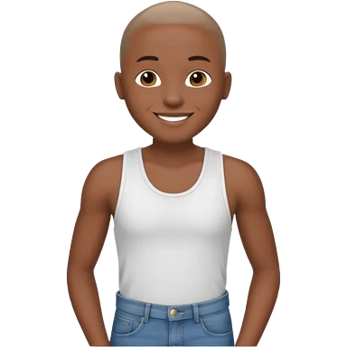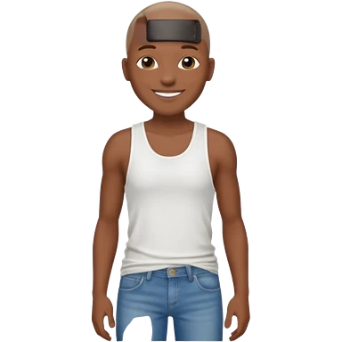 Un personnage noir avec un débardeur blanc et un jean 👖 avec des cheveux rasés emoji
