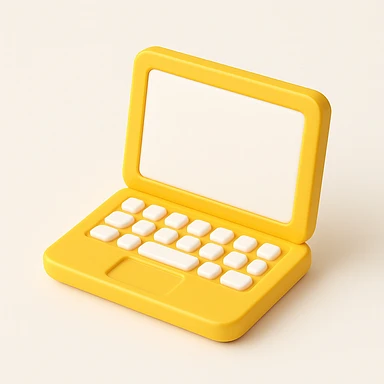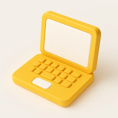 Isomorphic 3D Icon of Laptop, Half Yellow, Half Dark Gray, Animated, Matte, white background. High Resolution. emoji