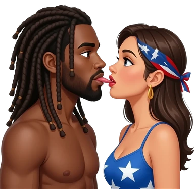 Black man with long dread locs and Puerto Rican women giving oral sex emoji