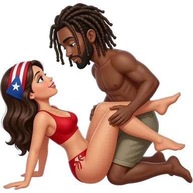Black man with long dread locs and Puerto Rican women having sex emoji