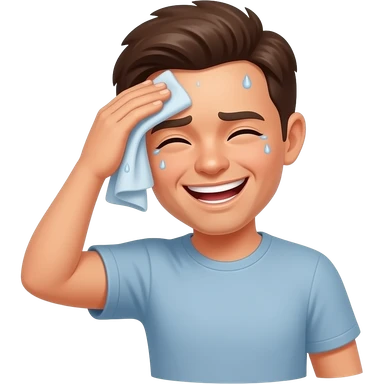 A Smiling Emoji Character Wipes Its Brow with a Cloth, while Beads of Sweat Dot Its Face, Conveying a Sense of relief emoji