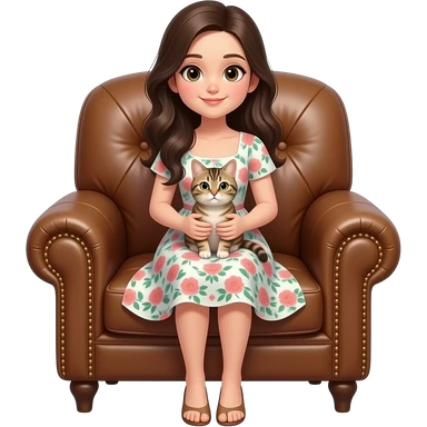 girl sitting in armchair with cat on lap emoji