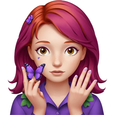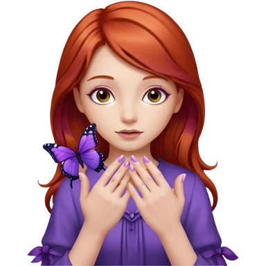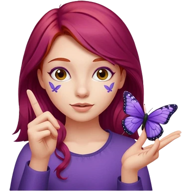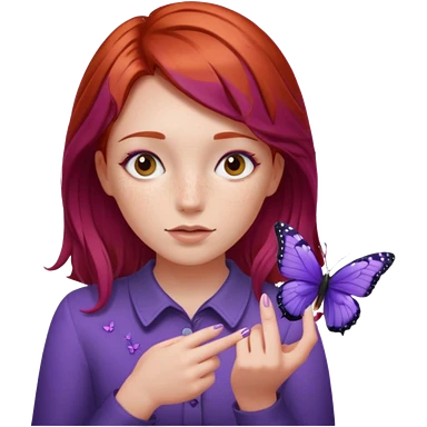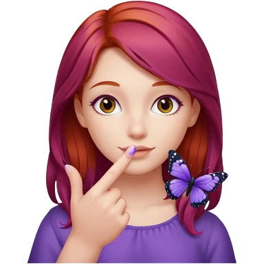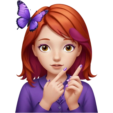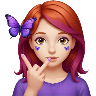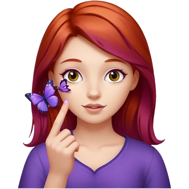 red haired girl finger holding purple butterfly - but her hands down emoji