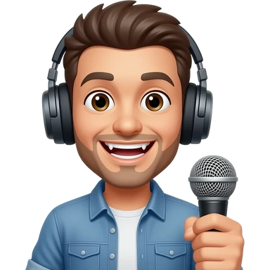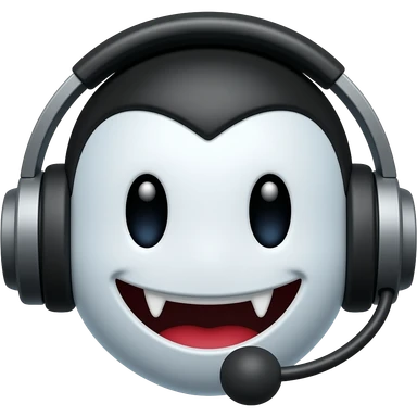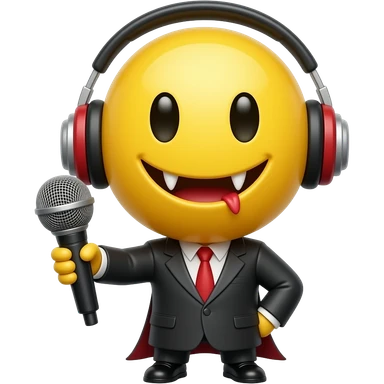 Vampire smiley face with headphones and a microphone emoji