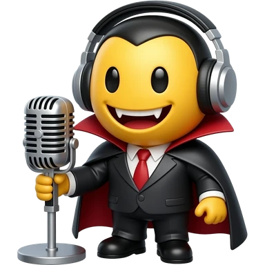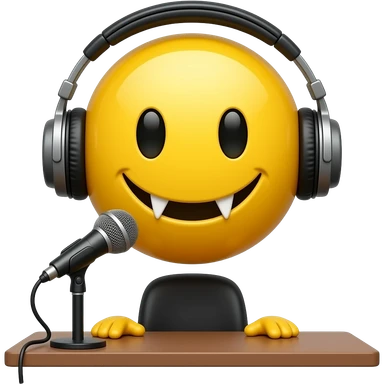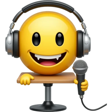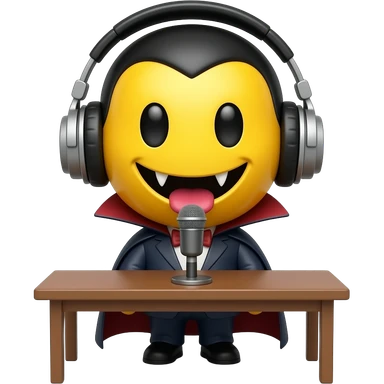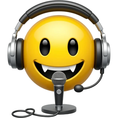 Vampire yellow smiley face with headphones and a standing desk microphone emoji