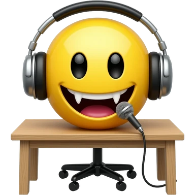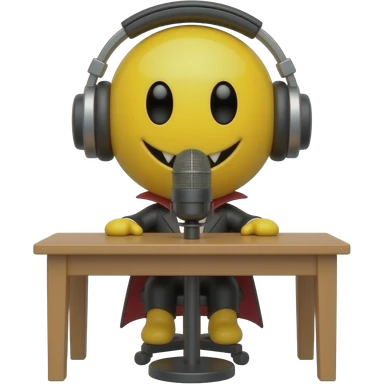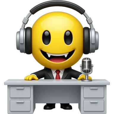 Vampire yellow smiley face no hair and no desk with headphones and a standing desk microphone emoji