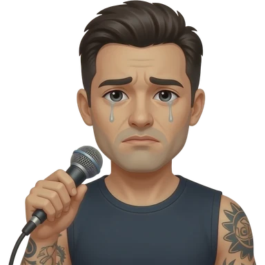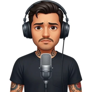 sad, lonely, dark and skin haired with tattoos,divorced man doing a podcast emoji
