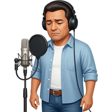 Sad, lonely, divorced Mexican man with headphones in the standing Microphone emoji