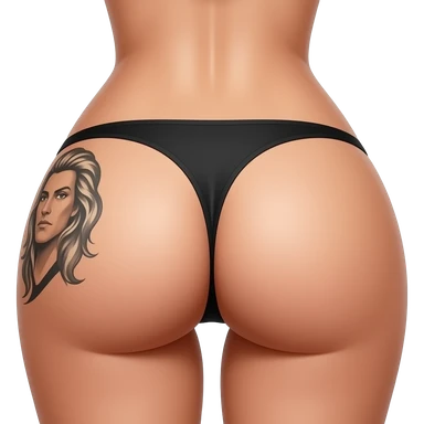 Nice butt in a thong with Shawn tattooed on her left buttcheek emoji
