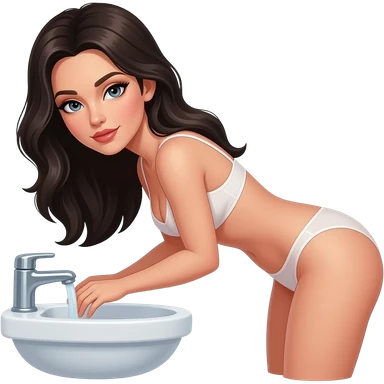 A dark haired woman with no panties bent over a sink looking back emoji