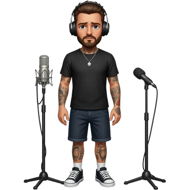 Sad, lonely, divorced tattooed Mexican man with headphones in the standing Microphone emoji