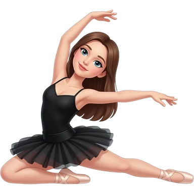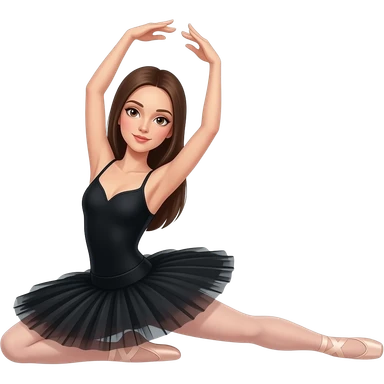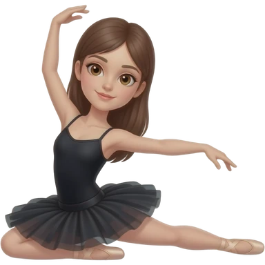 brown eyes hair more straight more skinny hair down, more skinny wearing all black (no baler skirt) beautiful russian ballet stretching emoji