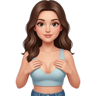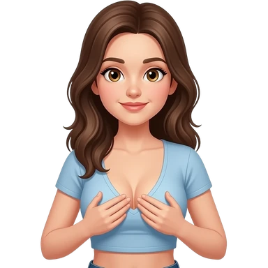 Hot 18 year-old girl wearing crop top, pressing bbobs together, deep cleavage emoji