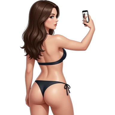 girl wearing only a thong, topless taking selfie, back facing viewer, looking at viewer, full body, hot, sexy, pale skin , realistic proportions, oiled up, glistening skin emoji