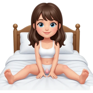 Naked teen girl, on bed, spreading legs, pussy view emoji