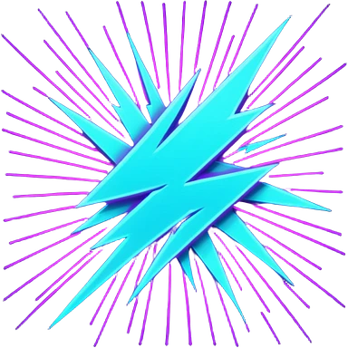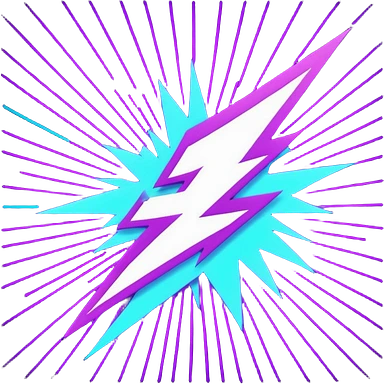 Minimalist emoji, a stylized lightning bolt cutting through a neon laser grid, 80s/90s retro-futurism style, bright purple and cyan, white background. emoji