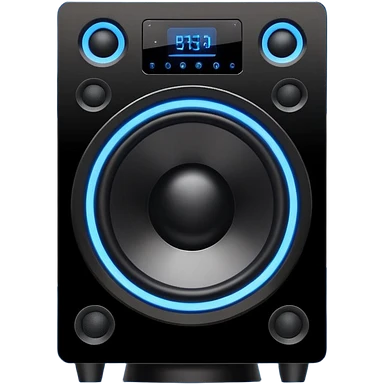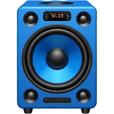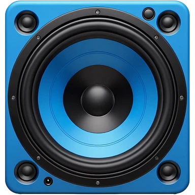 Vector style emoji, large subwoofer speaker with visible vibrating sound waves, electric blue lightning bolts popping out, flat design, bold outlines, white background. emoji
