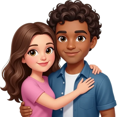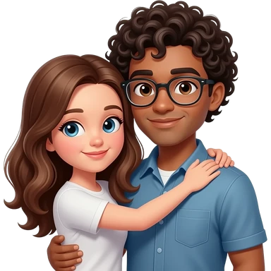 white girl with brown hair hugging brown guy with glasses and curly hair emoji