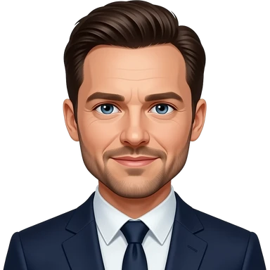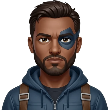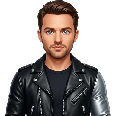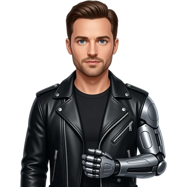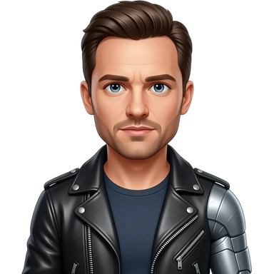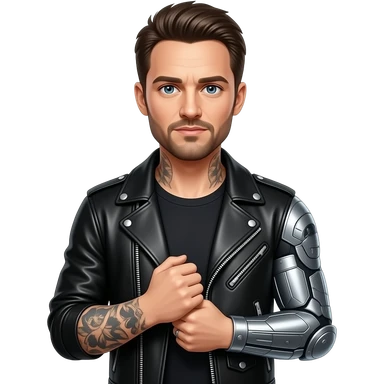 Sebastian Stan with a leather jacket and one metal arm emoji