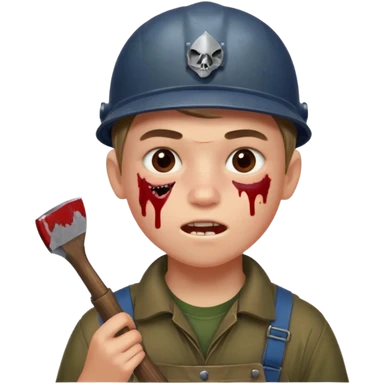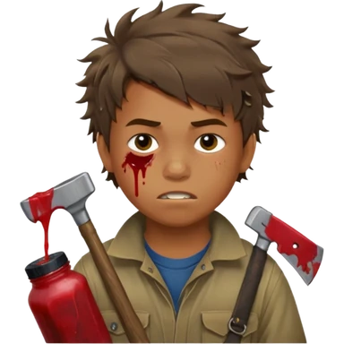 13 y/o Brian robeson at the beginning of Hatchet distressed, has hatchet, small scratches(no bleeding type) on face, no blood on hatchet emoji