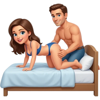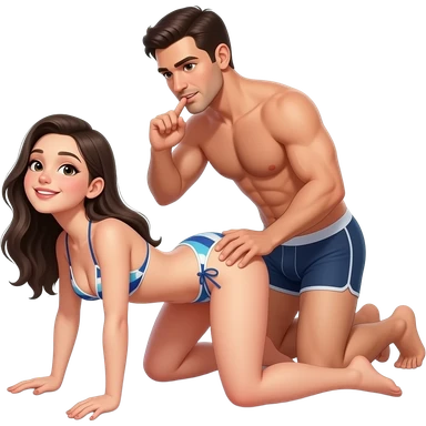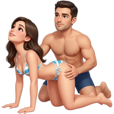 fille à quatre pattes en bikini la tête en arrière,jambes écartées avec un homme en slip derrière elle qui tiens le coup de la femme avec une main sur la hanche de la femme emoji