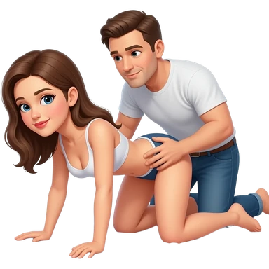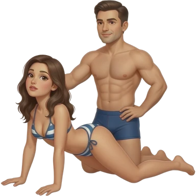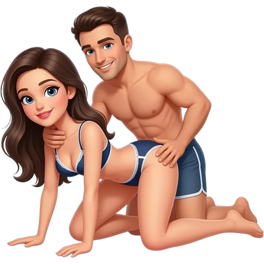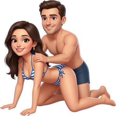 fille à quatre pattes en bikini la tête en arrière, jambes écartées avec un homme en slip derrière elle qui tiens le coup de la femme avec une main sur la hanche de la femme emoji